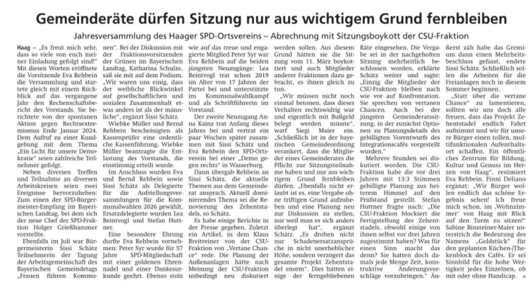 Auf der diesjährigen Jahreshauptversammlung wurde Peter Syr für 57 Jahre Parteimitgliedschaft geehrt. Außerdem wurde über viele lokalpolitische Themen diskutiert. Die Details sind in dem nachfolgenden Zeitungsbeitrag beschrieben.